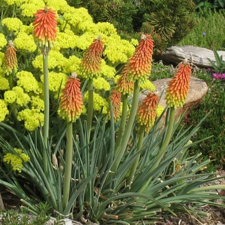 Fire Dance Red Hot Poker -High Country Gardens Sales kniphofia hirsuitus eriogonum umbellatum v. aureum shasta sulfur