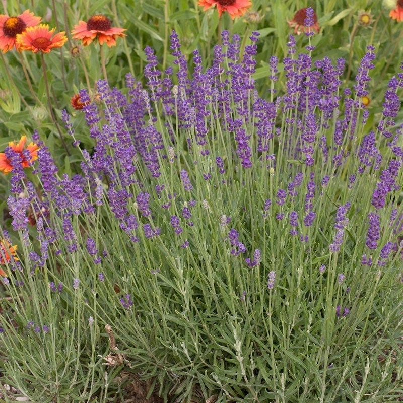 Lavandula angustifolia ‘Hidcote Superior’ (English Lavender) is an improved seed-grown strain from Jelitto Perennial Seeds in Germany. With its extremely uniform compact habit and deeply colored violet-blue flowers, ‘Hidcote Superior’ is an excellent choice for edging walks and paths, where the aromatic flowers and foliage can be easily enjoyed. One of the most cold hardy varieties of Lavender.
