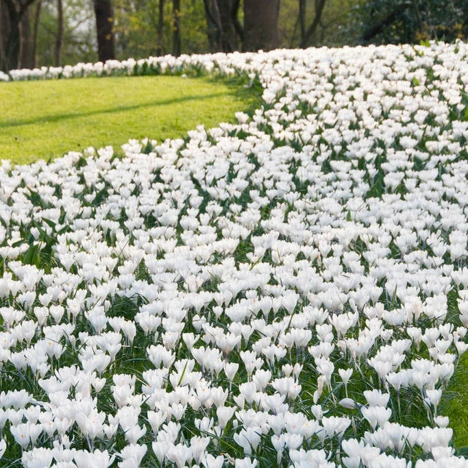 Crocus vernus ‘Joan of Arc’ (Dutch Crocus) is a large cupped Crocus that greets spring with snow-white petals and bright orange pistils. An early spring bloomer, it will naturalize well over time creating drifts of white in the garden. With grass-like leaves they can also be planted in a lawn providing a welcome display. Give them six weeks, post-bloom, before mowing so the bulbs can regenerate and they will reward you by increasing in the coming years. To establish an area, plant them by the dozens in well-drained garden soil, avoiding heavy clay, in a full sun to part shade location. The flowers will bloom for about three weeks, closing at night and opening with the sun and each corm (bulb) will produce several flowers. Squirrels seem to have a pesky knack of finding newly planted corms, so if they are a problem, simply cover the planted area with a piece of chicken wire. As Crocus multiply, they can be gently dug up in the autumn and replanted every 4-5 years. 4-6″ tall x 4-6″ wide.