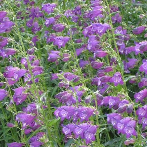 Penstemon x mexicali Pikes Peak Purple® is a superb hybrid variety that blooms most of the summer with large concord grape-purple flowers. The plants are vigorous and have attractive glossy green foliage. A 1999 Plant Select® winner. Drought resistant/drought tolerant plant (xeric).