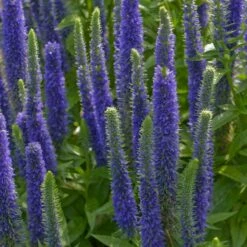 Veronica spicata ‘Royal Candles’ (Speedwell) is an outstanding upright growing Speedwell with large, attractive deep-green leaves and long blooming spikes of deep purple-blue flowers.