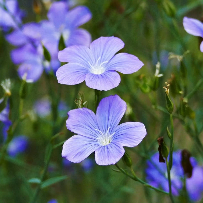 Spanish Flax (Linum narbonense) is a gorgeous Old World species with large clear blue flowers streaked with dark blue, held high on stiff stems. This species is an excellent choice for harsh sites and poor soils. Drought resistant/drought tolerant plant (xeric).