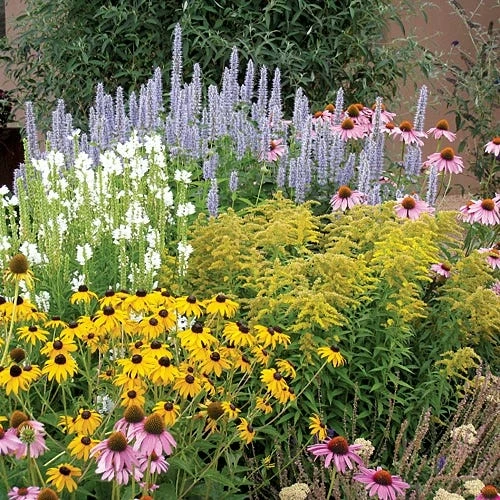 Exclusive to High Country Gardens, our Summer Dreams Pre-Planned Garden provides big, easy-care color. Designed for small sunny spaces, this garden is the perfect solution for a small flower bed, or it can be repeated to fill a larger space. These easy-to-grow pollinator-friendly perennials include many native plants with a wide native range, suitable for planting across the country.