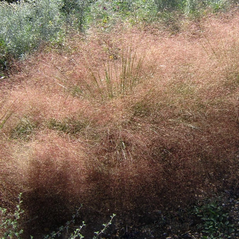 Muhlenbergia reverchonii ‘Undaunted® Ruby’ (Muhly Grass) has an impressive late summer display of see-through amber-pink flower spikes. This is the one Muhly grass with showy pink flowering plumes that can be grown in USDA zones 5 to 9. A High Country Gardens Introduction. Plant Select. Drought resistant/drought tolerant plant (xeric).